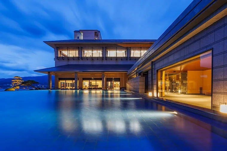 HOTEL OOSADO is a time-honored hotel standing high on Aikawa Kasugazaki on the west coast of Sado Island. The location with panoramic views of the Sea of Japan provides a special place to take in the sunset and enchanting sight of fishing lights out at sea, from your room, the hot spring, or elsewhere in the hotel. Kasugasaki Hot Spring offers directly-sourced hot spring water and is an ideal spot for watching the ever-changing seascape as you take a luxurious soak in the open air bath. Another highlight is the cuisine, which takes strong inspiration from the bounties of the nearby sea. This hotel continues to cherish traditional Japanese elegance while incorporating modern comforts, providing blissful moments away from the everyday.