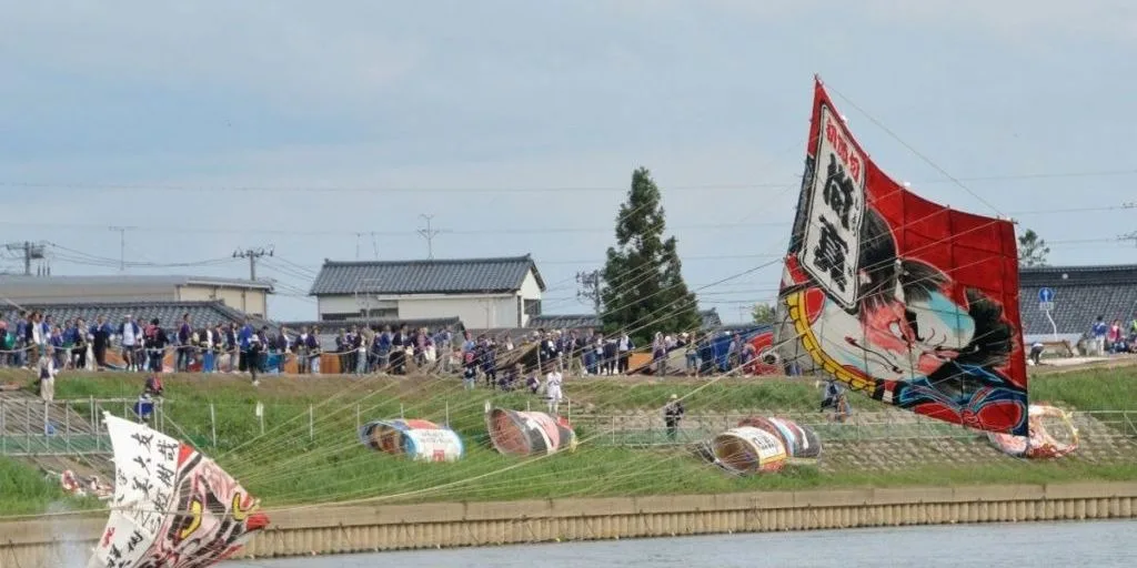One of the most exciting summer festivals to join is the Shirone Giant Kite Battle every June. Even though National Geographic made a video titled the Great Kite Fight, very few foreigners know about Shirone Town’s hundreds-of-years-old festival. It involves peaceful combat with hundreds of enormous (5m x 7m) handmade kites painted with ancient Japanese designs. Rival teams gather on opposite sides of the Nakanokuchi River. Between boisterous bouts of drinking and picnicking, the teams fly kites over the river. Each group wants to catch other teams’ kites in their lines, initiating ferocious tug-of-war contests. The teams request bystanders like you to help pull on the kite strings. Join the fun. The losing kites break apart or fall into the river, followed by shouts, laughs, and sharing food and sake.