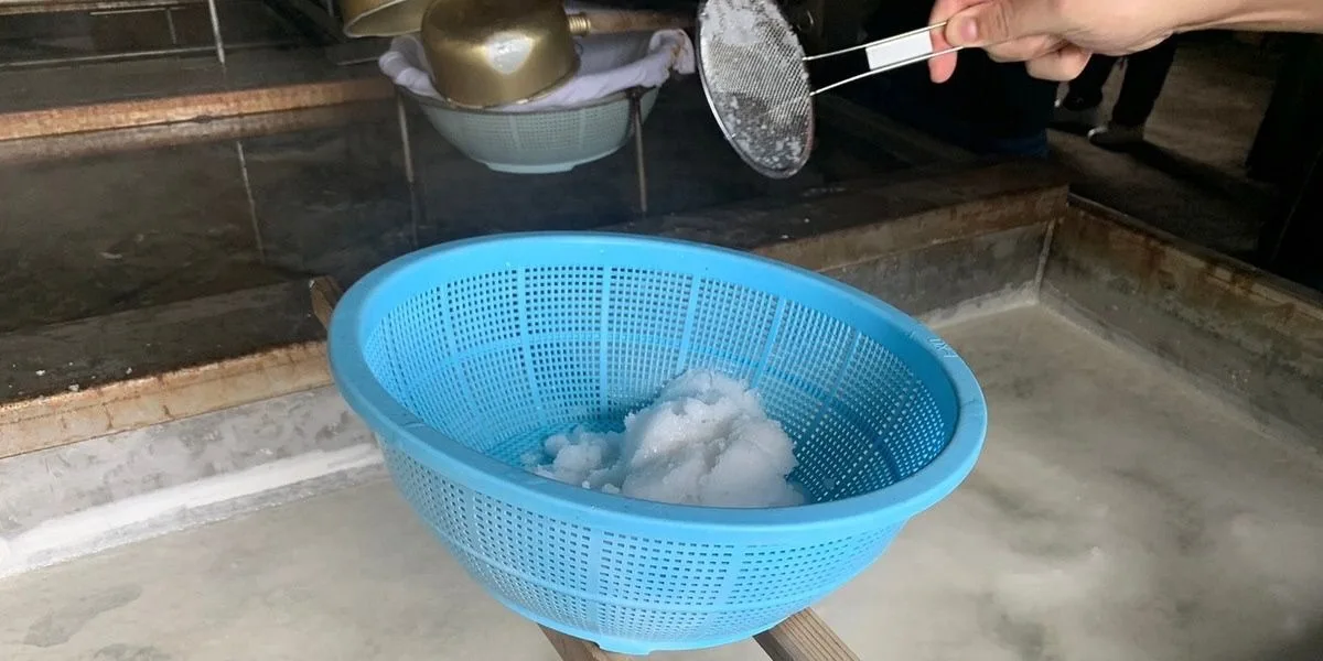 While at Meotoiwa, you can also enjoy a unique cultural experience at the roadside restaurant next to the beach. You can make your own salt! This traditional process dates back hundreds of years. You start by collecting water from the sea with buckets. The salt-water is rich in minerals and has a unique flavor. Next, you’ll carry your bucket across the road to the wooden hut where the salt making process actually takes place. Inside, you’ll immediately feel the temperature increase as you watch the steam rise. The large water baths contain sea water in different stages of the process. After pouring the water into a filtration system to remove sediment and then into one of the larger baths, you move onto creating the fuel. For hundreds of years wood has been used to fuel the fire that heats the water. Step back in time as you chop wood by hand. From water collection to the final delicious product it takes about eight to ten hours. The resulting mineral-rich salt has a unique profile that would add strong flavors to any dish.